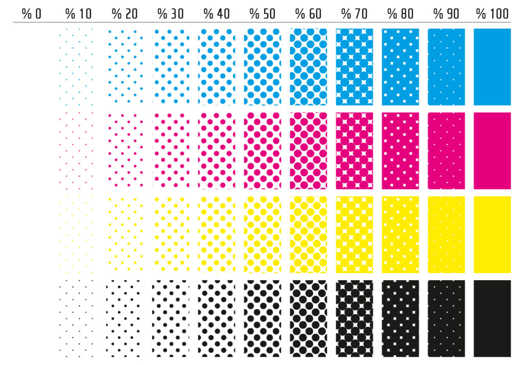 Periyodik tram kullanılan işlerde renk yoğunluğu, noktacıkların değişen çapıyla belirlenir. Periyodik olmayan tramlama şeklinde ise renk yoğunluğu birim alan yayılan sabit çaplı noktacıkların yerleşim sıklığı ile belirlenir.